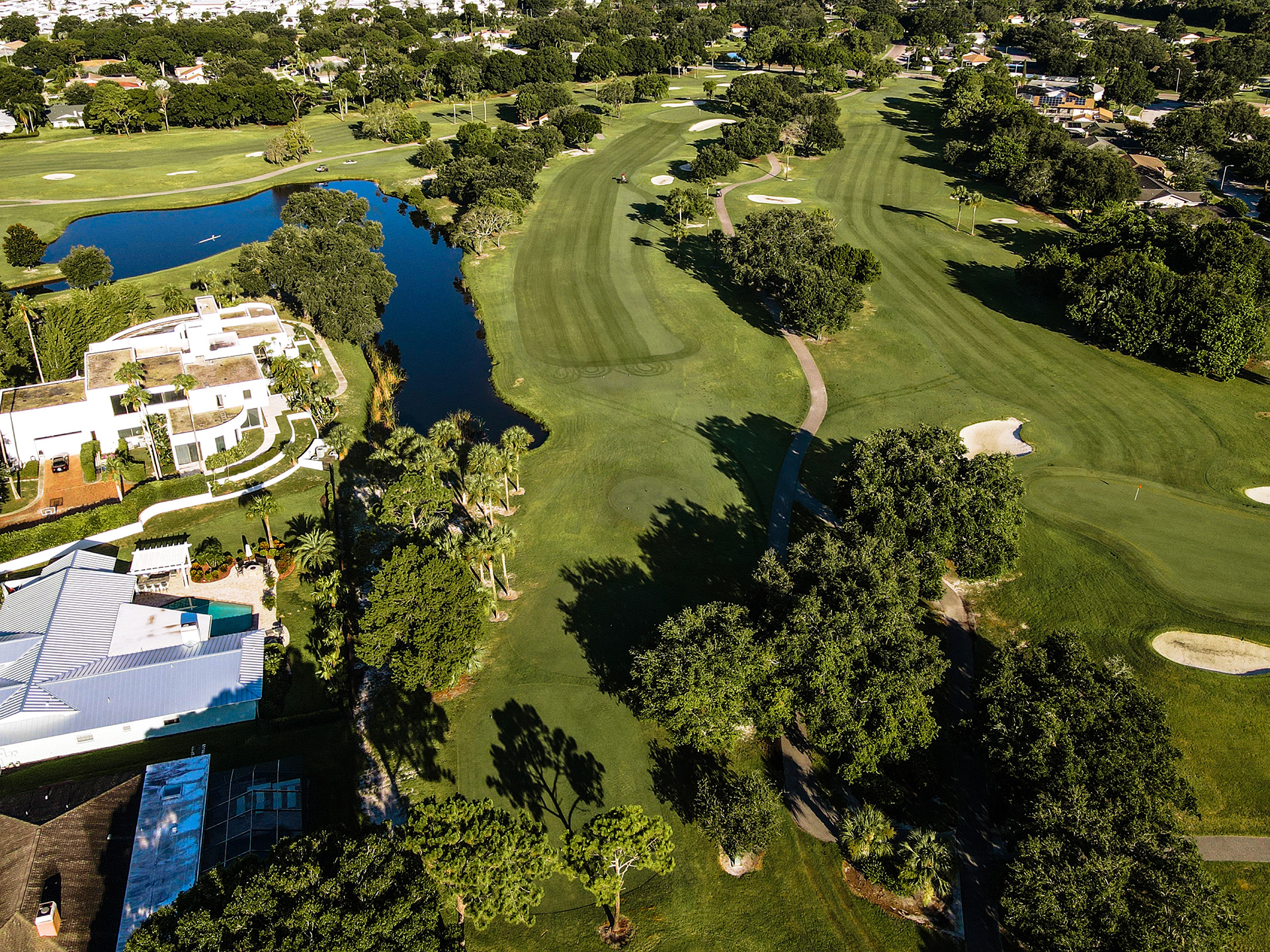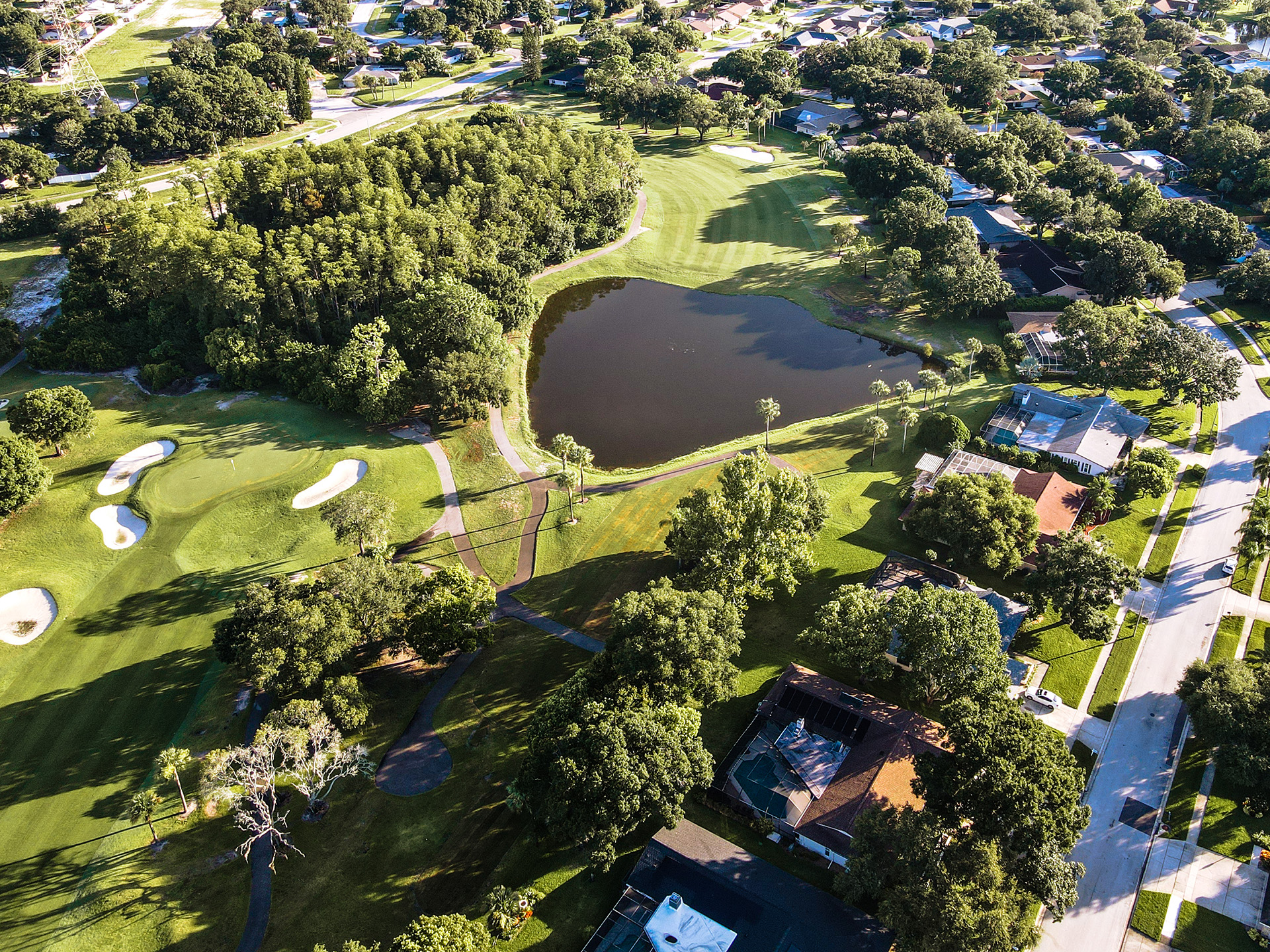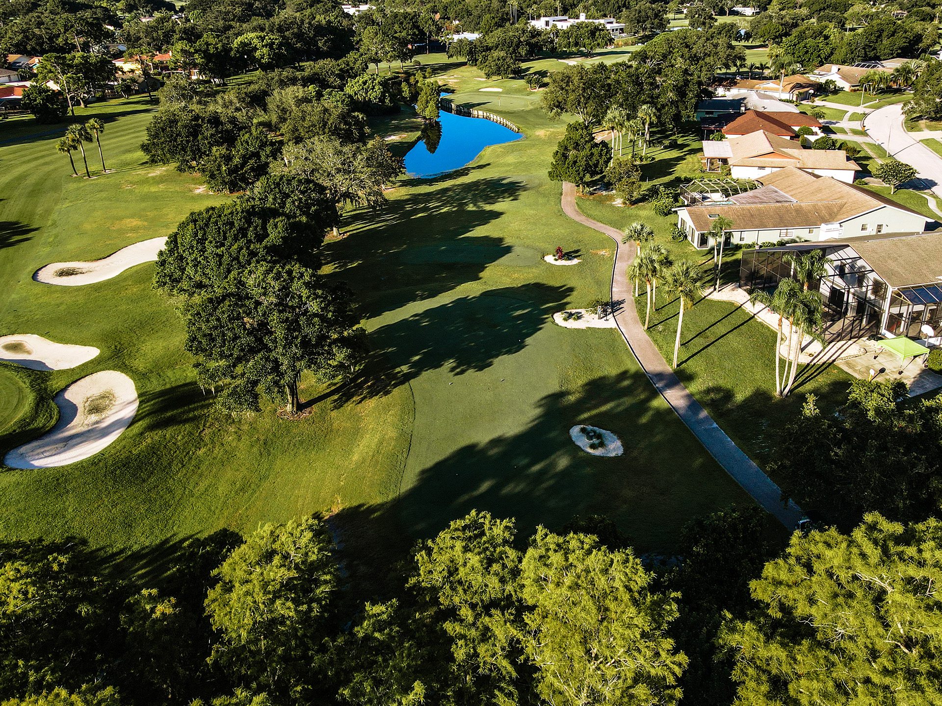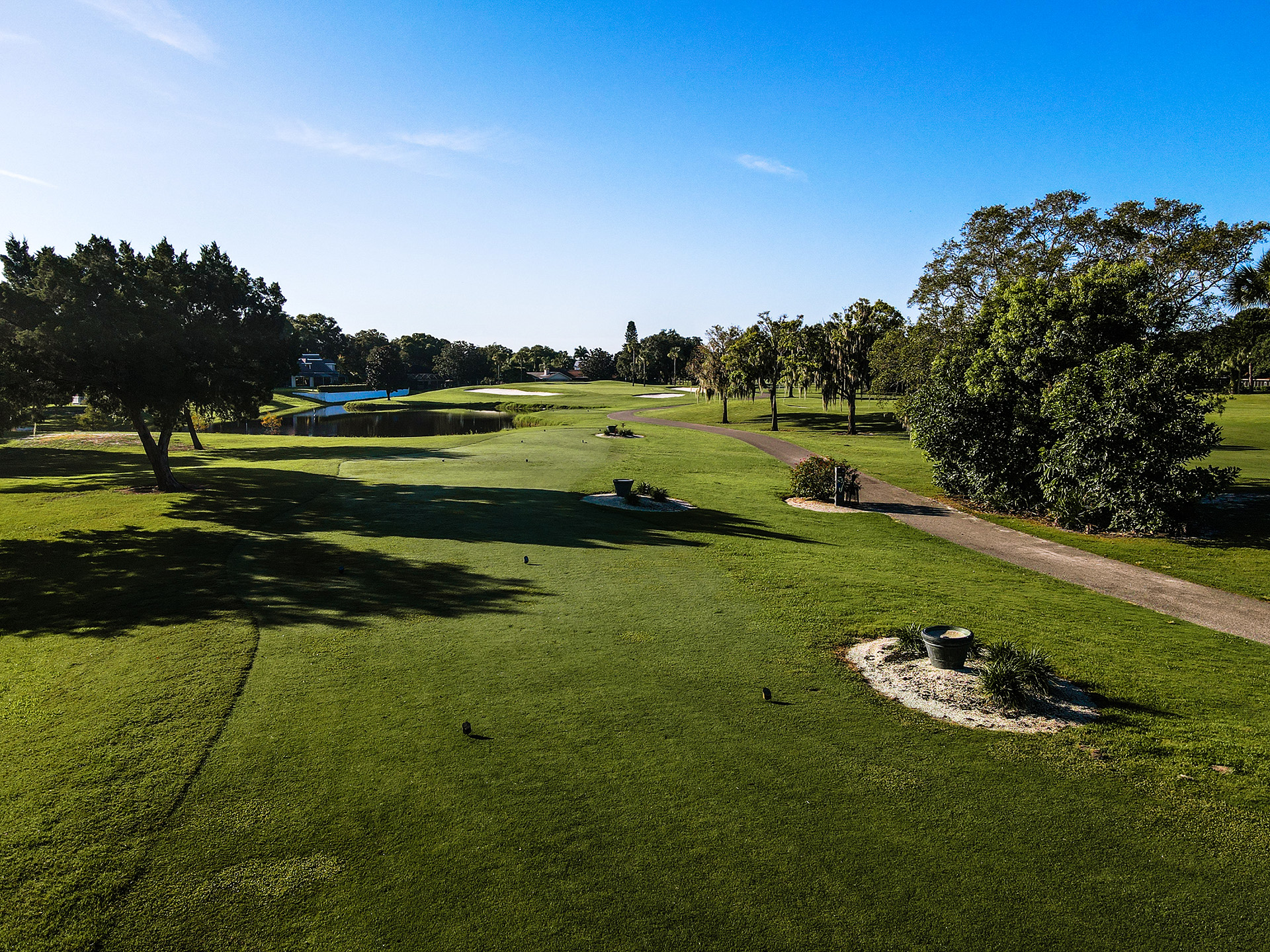 Great Par 3 - Signature Hole for the Bayhead Course. Half island green so don't miss left. Right is safe