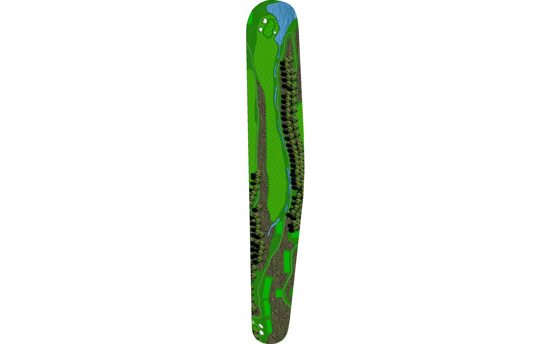 Narrow landing area. Finding the fairway is key to have a chance to reach the green in 2. If you miss the fairway you can lay up with a mid-iron to set up a short wedge for your approach shot. The green is protected by bunkers on the front left and right side.