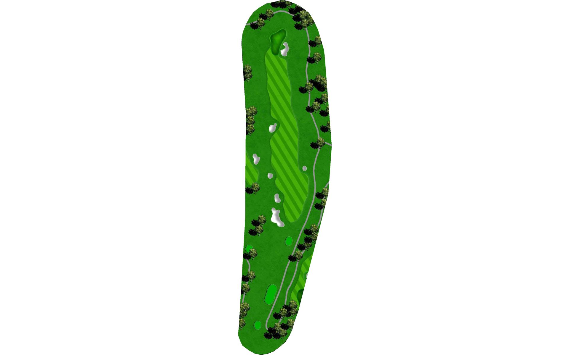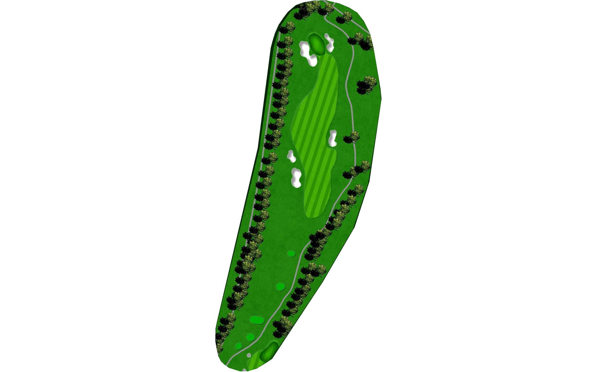 | The first par 5 on the golf course is a long, tough test, where the best strategy is to hug the left side of the fairway the whole way. The drive will have to carry a short, small water hazard and the fairway bunkers left of the landing area. The second will, again, need to miss a larger fairway bunker on the left. The final stretch is peppered with bunkers on both sides on its way to a green that slopes away from the strong landform on the front-right. |