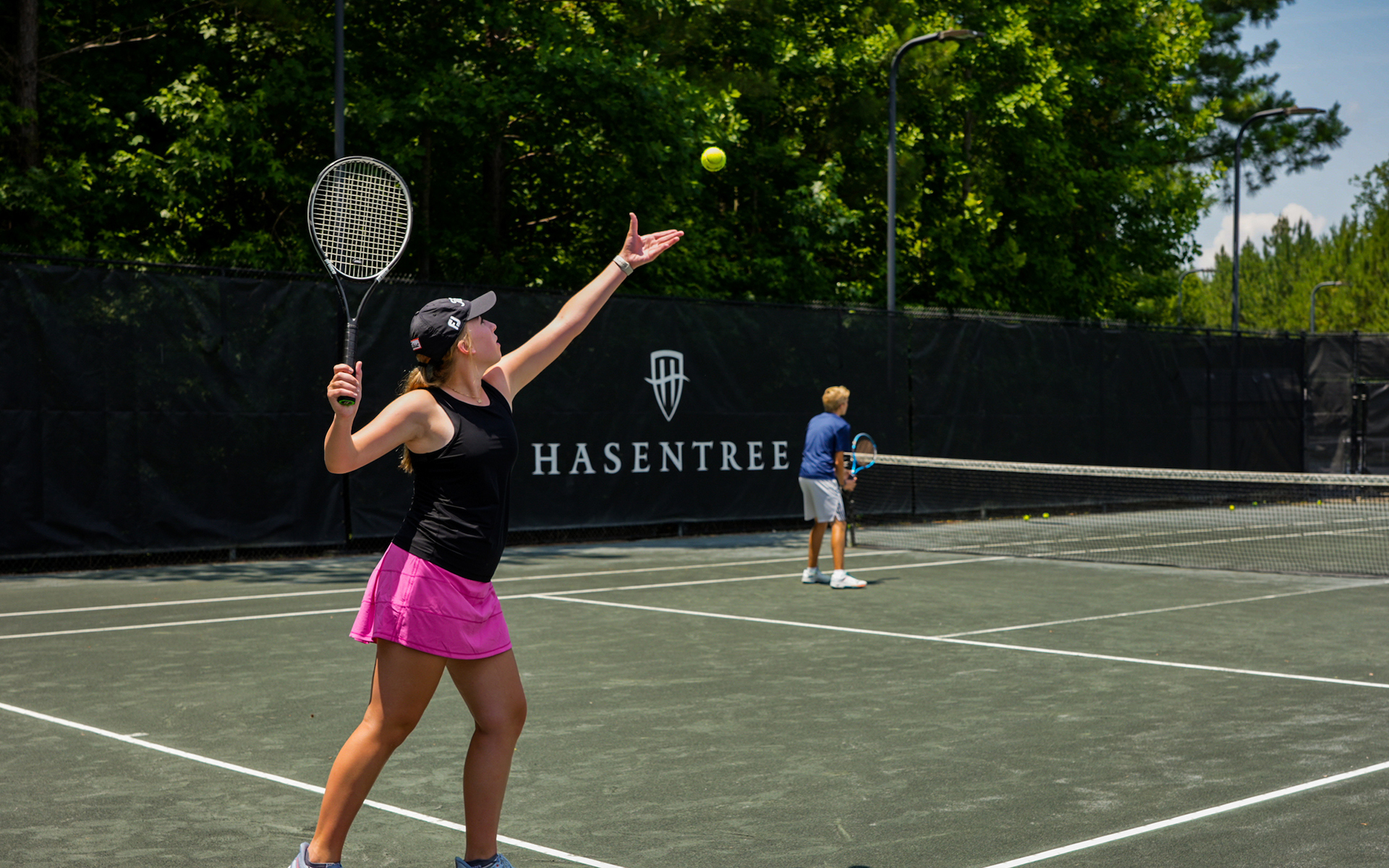Our tennis program happily accommodates all ages and skill levels, so don't worry if you're just getting familiar with the game. Choose from our six lighted, year-round tennis courts – four Har-Tru clay courts and two hard courts, complete with pickleball lines and QuickStart lines for junior players. Camps, clinics, training sessions, round-robins and social events allow Members of all ages and abilities to enjoy the game and socialize.